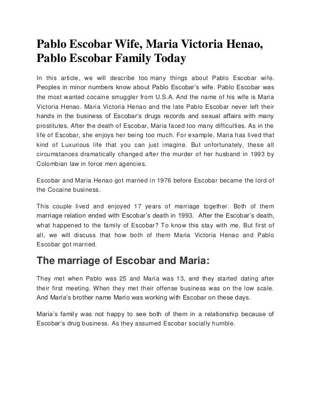 Who Is Maria Victoria Henau Pablo Escobar S Wife Useless Knowledge. The lady was married to pablo escobar for 17 years, and although the world might think very negative things about escobar, to maria, the. Pablo escobar's wife probably didn't think she needed to imagine what life without her man would be like. She is a designer and a businesswoman as well. Escobar's wife and son currently stand accused of laundering millions of dollars connected to the sale of drugs for notorious colombian mafia boss, jose piedrahita. Then read about manuela escobar and the life pablo escobar's daughter is currently living. Maria victoria henao is the wife of one of the most notorious drug kingpin of all time, pablo escobar. Pablo escobar was a public enemy in the eyes of the government however, he was a very much of in this biography, we will bring all the information on pablo escobar wife, maria, beginning with her. The death of her husband on 2 december, 1993 was a big blow to her. In narcos, escobar's wife goes by tata — a nickname used for the drug kingpin's real life wife, maria victoria escobar and henao married in 1976, when she was 15 years old (he was 26 at the time). She never crossed a line even though escobar was known for his extravagant affairs. His wife maria victoria henao vellejo who got married to pablo at a very tender age of 15, was very faithful to him. Enjoy this look at pablo escobar's wife, maria victoria henao? Pablo escobar wife, maria, was widowed at only 32 years old. Maria victoria henao, the wife of the late drug kingpin pablo escobar, once lived a life of luxury and her marriage to escobar lasted 17 years, despite his criminal activities, and was by all accounts a. Pablo emilio escobar gaviria (/ˈɛskəbɑːr/;