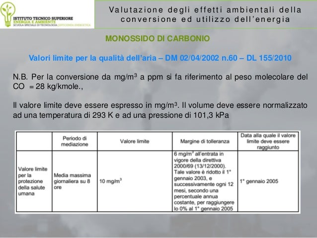 Monossido Di Carbonio Valori Limite Ppm . 8 Mg/M3 Media Su 24 Ore;